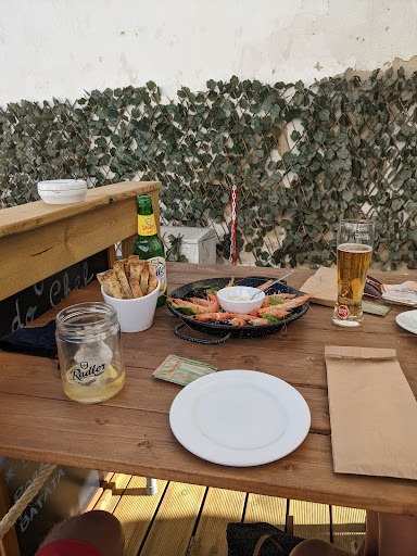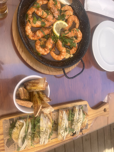 Good drinks and nice food menu. Has good selection of alcoholic drinks at normal prices. Has a nice outside seating area on a wooden deck in a nice location in Tavira, really central. The tapas sounded all very nice and the prawns were really good with fresh salt and a good dip but perhaps a little on the expensive side. Still overall a good experience and would probably go for...