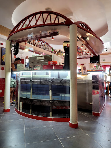 This is a locals fish restaurant on a housing estate 2 miles inland from us with no reservations taken. Being a Sunday, the restaurant is rammed and there is a waiting list of numbers being given. We are 27! 80 mins on the list exceeds 65 and we are seated. Only food on menu is mixed bbq fish which today is sea bass, grouper and sardines with boiled potatoes. €10 and it is all you can eat! Salad and desserts a small extra charge. Fresh fish, immaculately cooked by staff who care served in a relaxed setting. Perfect. We are the only non locals and the place is Benfica themed. I literally cannot buy the fish in the market for that price. Best fresh fish I have eaten anywhere ever. Simply astonishing food at a mind boggling low price. Just get there before they open or be prepared to wait. Worth the wait though as we found out. Edit:- Returned for lunch on a Wednesday and arrived at 11.35. Gates opened shortly afterwards. Waited in shade and restaurant opened at 11.55 and we were seated. Full by 12.15 and a queue of 20 by the time we left at 13.00. So arrive after 14.00 or before 11.45 if you don't want a long wait for a...
