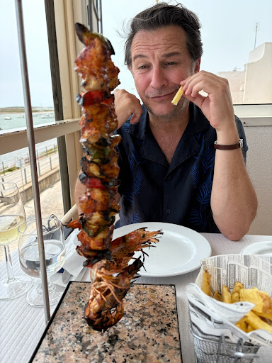 Read moreI went in at lunchtime and booked a table for 7 o'clock that (Thursday) evening. The patron was apologetic that no balcony table would be available. When we arrived we were treated as honoured guests and ours was a window table which was (for us) every bit as good as the balcony - the view was to die for. Gill ordered crab pate for starter while I had fish soup - both served quickly and both of high quality. For main, Gill chose linguine with salmon in a rich cheese sauce and I the fish mixed grill. Gill loved hers and I was dismayed by the breadth of mine. First a platter of three different fish, (with chips and mixed salad) and then when I'd waded manfully through all three, another four of yet different varieties arrived and would I like some more still? I wasn't sure whether they could be serious, so I said 'Yes' and sure enough, as I finished my seventh fish, a large golden bream arrived with another dish of chips and another of mixed salad. We'd washed it all down with a jug of sangria, and I could manage only a single ball of ice-cream for pudding and Gill had a crepe. We declined coffee but were served a complimentary liqueur. Gill worried what it was all going to cost and was amazed that the bill was only 54 Euros. Waiters had danced attendance throughout and made us feel special. Though this was our first visit, the patron personally thanked us for coming and saw us off, having taken the trouble to remember our names. A lovely...