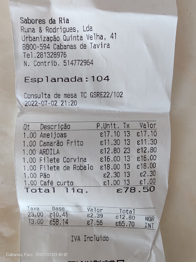 We were very disappointed with out visit to this restaurant yesterday. We ordered the Couvert which at €7.10 is far more pricey than normal but it was a bit fancier with Tuna pate and sauteed mushrooms. A bread basket was served with it, I had fish and chips which was OK - chips were frozen I think and the fish was more crispy batter than fish (could not tell what the fish was)! My husband had the tuna with onions and peppers - he requested it medium but the middle of the fish was completely raw - the fish or sauce had no flavour - he did not eat it and when we advised the server that there was not flavour to the dish he told us that the fish should have no flavour as it was steamed! We live in Portugal and have had this dish hundreds of times - we know what it should taste like. It appeared the dish had been heated in a microwave - despite my husband being served at least 5 mins after me! The most disappointing bit was when the bill came (on a tablet with the bank machine in hand- really bugs me) I asked the waiter to leave the tablet so I look at the bill - there I noticed a charge of €2.90 for bread - I told the waiter I had not ordered bread - he answered well how were you going to eat your Covert without bread! I told him that it should be included - he went off and brought back the menu and showed me what was included in the couvert - I told him it was misleading and customers should be told when ordering of the extra charge and he advised Well that would make the Couvert €10! Well thats what it is when you are given bread that is EXTRA! It wasnt the €2.90 that bothered me it was the way it is done underhanded. We left the exact amount of the bill and will not...