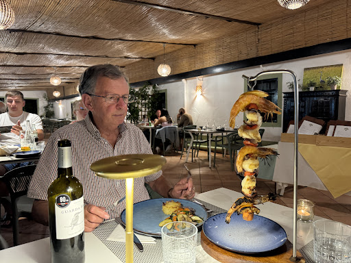 Read moreEs ist unser erster Aufenthalt in der Ferienanlage Pedras d'el Rey. Wir (Ehepaar 65 und 69 Jahre) besuchen unseren (Enkel-)Kindern, die im August 2024 nach Tavira gezogen sind. Heute war ein Regentag und wir haben es vorgezogen, vor Ort im Vale d'el Rei zu speisen. Abweichend von den bisherigen Rezensionen kann ich folgendes beschreiben: gehobenes Ambiente im Verhältnis zu den anderen Lokalitäten in Santa Luzia oder Praia do Barril. Erstklassische Fischspezialitäten (z. B. Tamboril medalhão (Seeteufel) oder Filete de Robalo; Wolfsbarsch), gehobenes Weinangebot (z. B. Tinto Vonpassus Reserva für 29 €/Flasche, ist natürlich abseits der Hauswein-Preise).