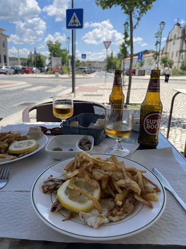 Lucked into this place recently. Full of happy diners enjoying the daily special, so we waited in the bar for a table and feasted a few minutes later. The menu del dia was great! Beautiful porco al Alentejana and grilled fish for entrees, a nice soup, and either pudin or the sweetest melon in the world for dessert. Best of all, the owners were really cool and took good care of us. Next time you're in Tomar for the matchbook museum, come here...
