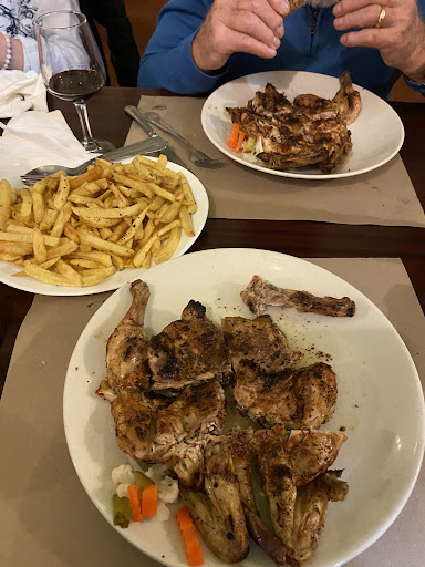 My wife, mother and I stopped for lunch. We had the grilled chicken, the baked cod in corn meal, and chicken piri-piri. We also ordered the olives, bread, and a liter of their house red wine. While everything was absolutely delicious, I took top prize for the delicious peri-peri chicken, but everything was very satisfying. Olives were marinated in garlic and oregano, and so wonderful. The service was excellent. When I was done with my chicken, I realized I had managed to get drops of chicken grease/juice on my shirt. Our wonderful waitress came out with a spray to (hopefully) neutralize the damage I’d done. She was very sweet, and we appreciate her care for her guests. Please visit when in Tomar, you won’t be...