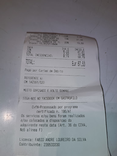 Read more"Gostaria de expressar minha insatisfação com a experiência que tive no [Gastrófilo] durante minha recente viagem. Após entrar no restaurante e pedir o menu, houve uma demora significativa para que ele chegasse. Posteriormente, aguardo mais de 1 hora para que minha comida fosse servida, o que foi particularmente frustrante considerando que outros clientes que chegaram após mim foram atendidos primeiro.