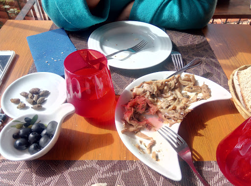 Para jantar pedimos para dividir uma dose de secretos de porco preto. Perguntamos o que vinha a acompanhar, ao que a empregada disse: arroz, batata, salada, feijão preto e fruta da época. Quando a refeição chegou, vieram batatas, duas colheres de arroz e uma metade de pêssego em calda. Os secretos, esses pareciam borracha. Comemos a muito custo por saber que não havia outras opções por perto.