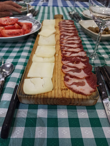 Read moreWe ate here quite early on Sunday evening. We were greeted by the owner who explained there was menu just a set meal. We were hungry and there were very few options open. We were not disappointed... we started with cheese and cold sausage platter with a tray of the most uncscious sweet tomatoes and bread. Pitchers of house red and white were brought along with a bottle water. The next course was a local spiced sausage which went down equally well, followed by the main course which was a platter of beautifully cooked steak and crispy fried potatoes ... the owner came out and asked did we want more meat... we had to decline as the initial offering was plentiful. The meal was rounded off with an almond dessert and coffee, we were offered liqueurs too. All this sat outside on the decking in a stunning old square by a fountain and lovely old church. Great relaxed service, really good food all for 30 euros a head. Definitely...