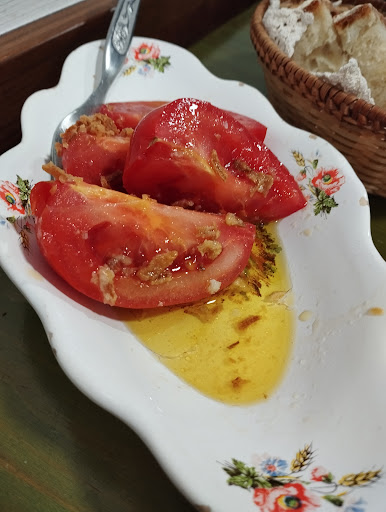 Read moreWe ate here quite early on Sunday evening. We were greeted by the owner who explained there was menu just a set meal. We were hungry and there were very few options open. We were not disappointed... we started with cheese and cold sausage platter with a tray of the most uncscious sweet tomatoes and bread. Pitchers of house red and white were brought along with a bottle water. The next course was a local spiced sausage which went down equally well, followed by the main course which was a platter of beautifully cooked steak and crispy fried potatoes ... the owner came out and asked did we want more meat... we had to decline as the initial offering was plentiful. The meal was rounded off with an almond dessert and coffee, we were offered liqueurs too. All this sat outside on the decking in a stunning old square by a fountain and lovely old church. Great relaxed service, really good food all for 30 euros a head. Definitely...