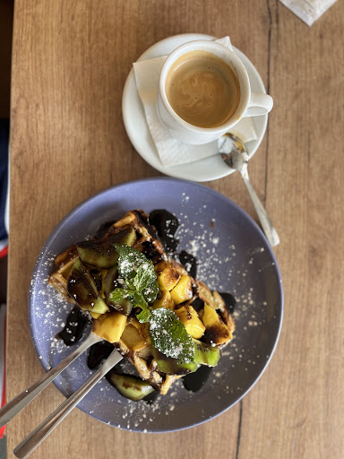 Read moreSince moving here, weâve quickly identified our âgo-toâ spots, whether itâs a butcher, a vegetable vendor, a supermarket, a fishmonger or a bakery. O Belga is without a doubt our spot for waffles (with Chantilly cream, strawberries and blueberries). Iâd never had waffles with basil leaves but I have now become so accustomed to that delicious flavor combination that it seems that is the only way you should eat them. Their meia de leites are also very good - and their pastries, particularly their semifreddo di morango, are dangerously delicious. We know the owner Iliana and almost all the staff and are dreading their closure for the month of October wen they head out for a well-deserved vacation. If youâre in Santa Cruz and you enjoy waffles, you MUST...