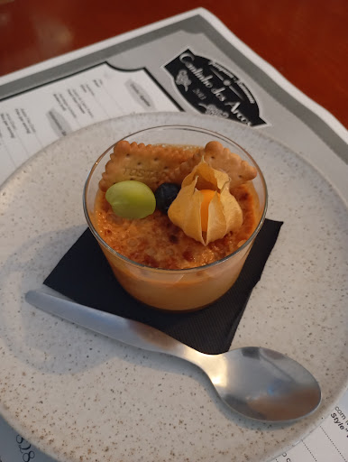 Excellent service in a very beautiful building. I ate alone but there was enough room. The clams for starters were just brilliant... so good. And a very generous portion as well. The main was bacalhau in local style... I don't know what to say, but fish with cheese and fruit... for me it just doesn't work. It doesn't belong together, not even on the same plate. Also, I think I was unlucky with the previous cut off the fish, because the amount of bones was just too much. Sure I know fish have bones, but benares of the cheese, you can't see or even feel the bones until you eat... or take the whole dish apart. But like I said, I think this cut was unlucky as well. For dessert I had a cheesecake. I normally don't eat dessert, but for some reason I did this time. It was very sweet and simply over the top for me. I guess that many people would like it, but I didn't. So, after the brilliant starter and despite excellent service, I did leave a little disappointed. However, I'd be happy to go back or...