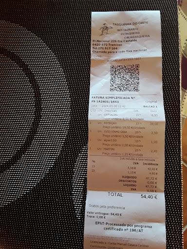 Read moreA Tasquinha do Chefe é sem dúvida o meu restaurante número um na região! A comida é deliciosa com aquele sabor caseiro que já é raro de encontrar. Sugiro vivamente a picanha, que é sempre no ponto, tenra e cheia de sabor. O ambiente é acolhedor e familiar. Perfeito para uma boa refeição com tranquilidade. O pessoal é bastante atencioso e simpático, sempre prontos a receber com um sorriso. Recomendo a quem estiver por perto ou até a quem, como eu, não se importa de fazer uns quilómetros por uma refeição que realmente vale...