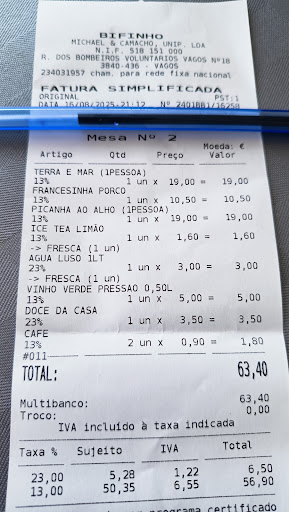 Read moreUm restaurante onde pagas pela simpatia e pela apresentação de alguns pratos, porque a comida não vai deixar saudades. Pedi para o meu filho uma francesinha que não estava má, mas pelo preço já comeu bem melhor. O molho parecia ser de hipermercado com sabor a barbecue. Pedi terra e mar para a minha esposa e picanha ao alho para mim. Tanto no meu como no dela metade do prato era salada. Se eu quisesse comer á base de salada tinha pedido em prato vegetariano. A picanha estava muito saborosa, mas provavelmente por ter feito 3 pedidos diferentes, já estava difícil de mastigar. Sugeri a uma das colaboradoras que, futuramente, as tiras de picanha fossem cortadas mais finas para não terem tanta gordura e mais faceis digerir e ganhava em quantidade. O prato de mar e terra nada de especial. Em relação á sala, a cadeira onde me sentei estava danificada no tampo e troquei pela que estava ao lado. Ambiente com moscas, uma criança em que os pais não conseguiam controlar o choro, sala cheia e ruidosa devido a um aniversário....