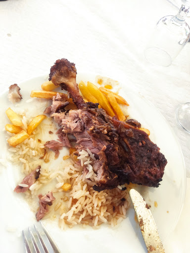 Good variety of meats: pork, chicken, fish. Beans, rice, potatoes, french fries, salads... The price is 6 Euros for a buffet with one beer (or Águas das Pedras water) and coffee included. Fruits and some other kind of dessert. The owner told me that the only thing forbidden is an empty stomach! Recommended! The price...