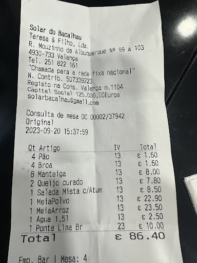 Había entrantes y comida a escoger entre carne, bacalao, primeros segundos.. para gustos varios. Comí bacalao y estaba superior: bien desalado, trozos gruesos bien cocinados y desconchado en láminas... La media ración es muy generosa: en una bandeja más que suficiente incluso para dos. Tienes entrantes como el queso con pan tostado blanco y de broa. El vino de la casa afrutado tinto me encantó.