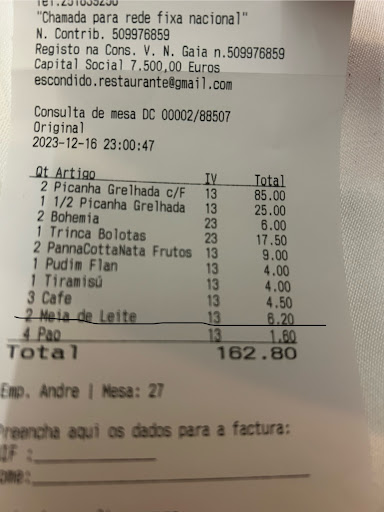 Read moreMe ha sorprendido que o escondidinho ya no esté tan escondido porque está bien señalizado y no como hace una decena de años que tenías que buscarlo durante un rato hasta que lo encontrabas en chamosinhos. Ha cambiado mucho también toda su zona tanto interior como exterior ya no es esa especie de casona dónde te daban de comer a la carrera y dejabas el coche en mitad de un barrizal sino que cuenta con un aparcamiento muy bien montado una zona de terraza estupenda y los dos comedores se encuentran bien acondicionados aunque el de la entrada bastante mejor que el del fondo más antiguo y esto sería mejor equilibrarlo porque un cliente se acaba sintiendo distinto en uno y otro lugar aún cuando la carta y los precios sean los mismos. Destacan sus carnes exóticas como la cebra el canguro el cocodrilo el búfalo que siempre pedimos algo por decir que lo hemos probado pero sus puntos fuertes son la ternera el bacalao y el pollo a la brasa servido en lo que denominan dosis queda para dos personas y siempre con una generosa guarnición de patatas frita asada o cocida con zanahoria lechuga o arroz blanco. Es un lugar recomendable y se llega perfectamente desde España ya sea por el puente de Goián con Vilanova de Cerveira y luego a la izquierda o bien por el puente de Tui con Valenca do Miño y luego...