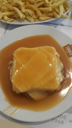 For me, it's the best francesinha in Porto in terms of size, given the traditional size, you'll not get completely out of breath when finishing it, the freshness and quality of the ingredients is incredibly high, cheese just melts smoothly when the sauce touches it, linguiça and salsicha fresca give it that smoked flavor, the beef is tender and seasoned perfectly, the fries are one of the best and everything beautifully complemented with an amazing and velvety sauce that has a very subtle hint of cummin, which is not traditional (I know) but it elevates the taste experience.