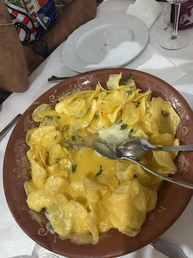 Sunday evening. Table for 4 . Good welcoming and starters were served . A few plates of different starters just to open . We order a Pichel Steak and Pichel cod . To drink a Rose wine . Good came and 3 of us shared the Pichel Steak leaving the cod for one person . All amazingly good only thing I would add would be a few more chips in the Steak ( since they knew we were sharing for 3 persons ) but in the end we were all satisfied with the food . One dessert and 4 coffees and we end up paying 15€ each what was a lovely meal for a fair price . The decoration inside is...