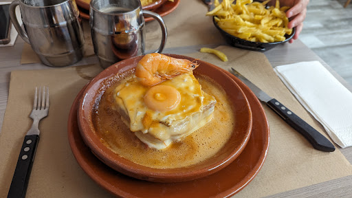 Este restaurante tem um ambiente muito agradável e rústico. É uma pena estar um pouco escondido. A francesinha é uma maravilha e o cachorro é muito bom. As sobremesas são deliciosas e muito bem feitas. O preço é muito barato e os empregados são muito simpáticos e sempre prontos a ajudar. Existe um bom espaço de estacionamento com muitos lugares. O espaço pode estar cheio muito facilmente portanto recomendo fazer uma reserva, mesmo que eles tenham muitos lugares, muito rapidamente eles enchem visto que todas as pessoas querem experimentar este maravilhoso restaurante. Este é um ótimo espaço para grupos e até para só jantar com a família mais próxima porém não recomendo ir lá para um jantar a só porque você iria estar a perder muito se for sozinho. Este local serve um ótimo vinho num copo especial e um ótimo café. Eles tem uma boa seleção de bebidas alcoólicas e não alcoólicas. Eu acredito que eles tem uma sala especial para grupos maiores portanto este local também é bom para festas. No geral eu recomendo este restaurante a todos que gostem...