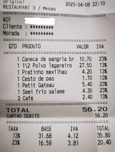 Restaurante moderno, bonito e confortável, de entradas comemos mexilhões, seguido de polvo à lagareiro com batata a murro e legumes e bebemos um jarro de sangria de vinho branco. De sobremesa optamos por petit gateau com uma bola de gelado e um bolo de salame, finalizamos o jantar com 2 cafés. Estava tudo óptimo excepto os cafés, eram péssimos. Em relação ao serviço fomos atendidos por uma rapariga e um rapaz ambos simpáticos, quando fizemos o pedido à rapariga pedimos uma doze de polvo, ela aceitou o pedido, quando efetuou o pedido na cozinha disseram que só tinham meia doze, ela voltou à nossa mesa e disse que só tinha meia dose de polvo e que para duas pessoas chegava perfeitamente. Na minha opinião deveria ter dito logo que meia dose era o suficiente, por acaso tivemos sorte senão era comida em demasia e gastos desnecessários, ou foi má fé ou distração, eu quero acreditar que foi distração, de resto nada a apontar sobre ela. Em relação ao rapaz muito profissional e sem nada a apontar. O preço não é o mais apelativo, não me refiro à comida em si, mas sim às sobremesas,...