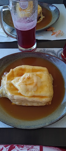 My favourite restaurant in Portugal. The Francisinhas are always amazing and the staff are very friendly and helpful. I visited with my girlfriend and had the meia Francisinha, and she had the mini Prego. Both were delicious, and it was nice that we were able to watch the Porto football match on TV and I could have a beer with my food. The restaurant seemed like a great place to watch the football and it stayed open really late...