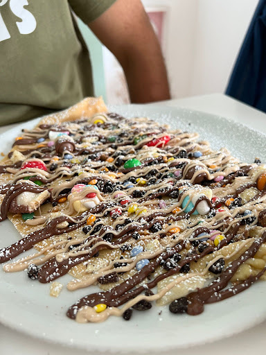 O crepe era bom, no entanto era tanta pintarolas, oreo e gomas que se perde um pouco do sabor real do crepe em si ((eu gosto de chocolate, só achei a proporção chocolates/crepe muito desfasada). Na tacinha crocante, o topping quente em cima do gelado fez com que o mesmo derretesse demasiado rápido. O sabor dos gelados era bom. O menu é um bastante confuso (principalmente na secção dos crepes) Funcionarias e ambiente do espaço era tudo agradável.