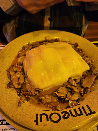 I recently had the pleasure of dining at TimeOut Sports Bar and Grill, and it was an absolute delight! The food at this establishment is beyond exceptional; their use of meat is akin to butter, providing an incredibly tender and flavorful experience. The Francesinhas, especially the one with kebab, was a delightful surprise that added an extra layer of enjoyment. And their Pregos? Absolutely amazing!