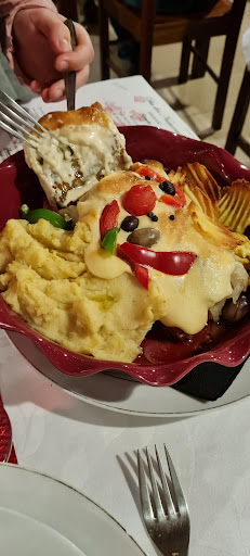 Uma hora e quarenta e cinco minutos depois veio a mista com 3 bocadinhos de carne, um arroz quase cru, batatas fritas tão fininhas que nem dava para sentir o gosto do que era, e pior ainda, o bacalhau veio queimado, sem gosto e, com a alergia de pele que ambos tivemos logo depois de o comer, posso com toda a certeza dizer: ESTRAGADO!!!! Entramos neste restaurante eram 13:30h em ponto e saímos eram 15:35h, pagamos 28€ por comida mal feita e ainda ficamos doentes por dias!! Ficam as fotos a...