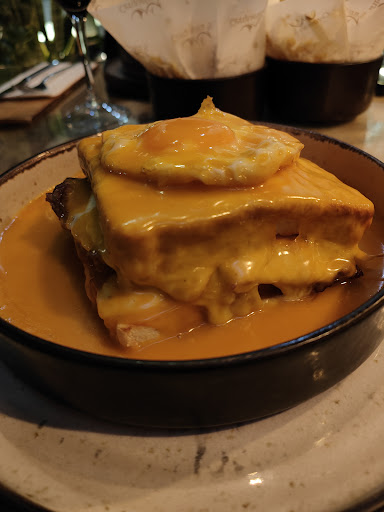 Read moreWe went specifically for the Francesinha which had been recommended to us by a local. The ingredients were good quality and the sauce was rich and creamy. If you're wanting a hot, spicy sauce you can ask the waiters for a selection of hot sauces. The service was excellent. I'd recommend reserving a table. We arrived around 7:45 Tuesday evening and had to wait around 10 minutes to get a table for 6. There was a queue of customers all the while we were in the restaurant. Parking is easy as there is an underground carpark with an exit just near the restaurant. After the meal, you can go for a stroll along the river. Excellent meal in a...