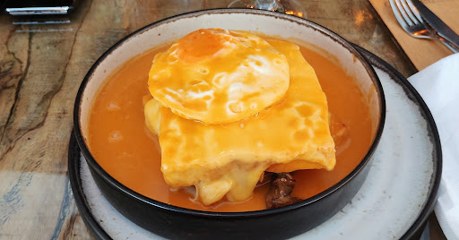 *disclaimer* this was my first Francesinha but if this is how they should be, it was fantastic. Super hot fresh home made fries, well cooked steak and the sauce was next level. My wife had the vegetarian version and she couldn't stop raving about it. All the staff were fantastic, offered great recommendations and were very friendly. The prices are a little higher than any of the latest menus pictured at €13.50 for the cheapest Francesinha option (which I had) Definitely worth it's high star rating.