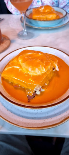 Visitei este restaurante com a minha família, incluindo o meu filho de 6 anos, que iria experimentar pela primeira vez uma francesinha. Desde logo, é importante referir que o sistema de reservas funciona por turnos fixos (das 19h às 21h e das 21h em diante), o que, apesar de não ser do meu agrado, aceitei por saber de antemão. Ainda assim, não posso deixar de considerar este modelo como o expoente de uma visão excessivamente mercantil da restauração – colocar tempo num momento que devia ser de prazer parece-me, no mínimo, infeliz.