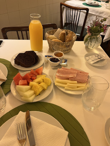 The restaurant: Food was okay nothing special. I asked for octopus, it was good but my husband had the lamb chops and they were very chewy and not enough cooked for our taste. Also be aware they will charge you the bread and cheese per person even if you don't ask for it. We thought it was included as in other portuguese restaurants along the Camino however we had to pay more than 7eur for it. For gluten and lactose-free folks like me that's not convenient at all. The rooms: they were small but comfortable and clean good enough for one night. The breakfast was very disappointing. We got a small plate of fruit for the three of us. I could have eaten the whole plate by myself. Besides that only bread and cheese not good if you have a special diet. I asked for a simple omelet and an extra banana and I had to pay 7.50eur for that. I should have had a second breakfast somewhere else...
