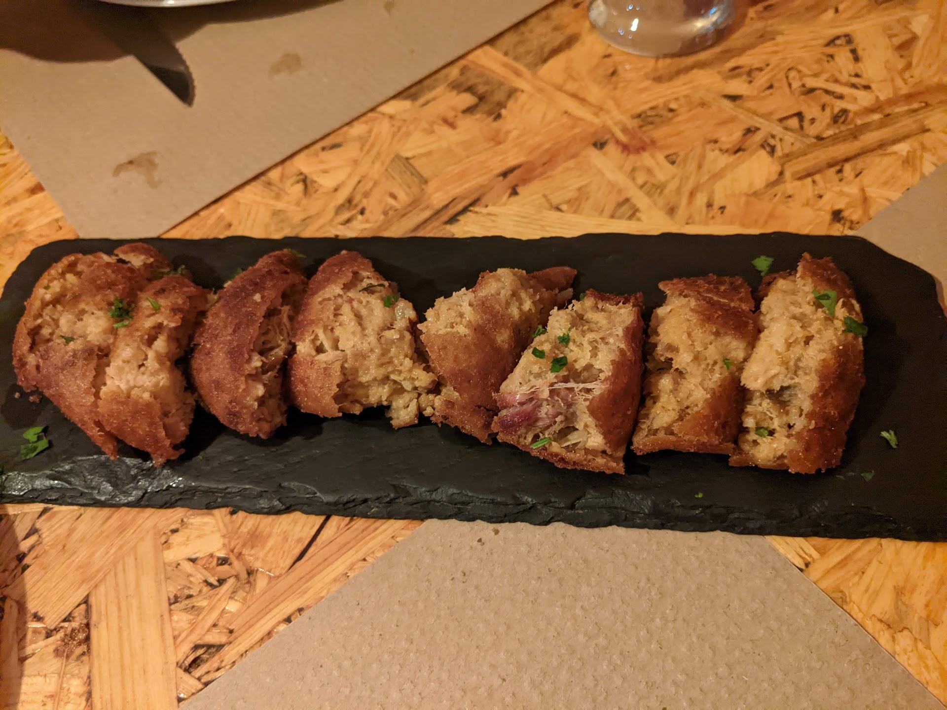 Sede Castelense è in poche parole la Club House della squadra di calcio locale fondata il 20 agosto 1975 ( Gruppo Desportivo Castelense di Castelo do Neiva ). Per entrare nello specifico questo vivace e piacevolmente chiassoso locale gestito da un gruppo di giovani, simpatici , disponibili e volenterosi ragazzi e ragazze, offre un servizio bar, cocktail bar e ristorante di tutto rispetto. Ci sono stato con la famiglia per fare aperitivo e un paio di volte a cena, sono rimasto soddisfatto in entrambi i frangenti. Dai petiscos a base di pesce, e verdura ( percebes, granchietti, sardine fritte, polpette di baccalà, patatas bravas , peperoni friggitelli arrosto) ai piatti abbondanti di pesce e carne serviti a pranzo e cena ( polpo, baccalà, tagliata, insalata di gamberi e hamburger ben fatti), il tutto gustato in compagnia di simpatici sostenitori del Benfica. Discreta carta vini con alcune etichette interessanti, birra e ottimi cocktail. Sono felice di aver consumato l’ultima cena in Portogallo da loro, ho chiuso in bellezza ordinando i percebes che non avevo mai mangiato ( ho dovuto chiedere spiegazioni su come si facesse a mangiarli). BRAVI! Lo...