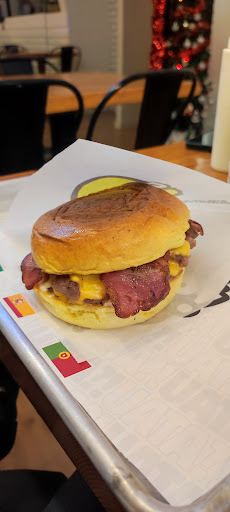 Read moreHamburguesas como las del McDonald's o burguer King pero de mejor calidad y el triple de caro , el tamaño es el mismo , la carne y el pan muy bueno pero el resto de los ingredientes super cutres , hay que abrirla para ver si los lleva por qué no te enteras , la salsa verde especial de ellos muy rica , pedimos patatas para compartir y la verdad que para el precio eran muy pocas , seis y algo con salsa de queso . El sabor de todo estaba rico , pero si eres de comer bien , no vayas . Tres burgues , patatas y tres bebidas 37€ , para lo pequeñas que son muy caros, mal con el idioma por qué no entienden español y el local sucio, las mesas y el...