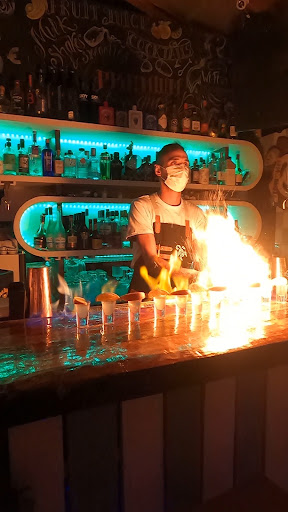 We went to Agua Salgada our first evening at Sagres, after that, we went there every day for the rest of our stay in Sagres! The tapas were so goood! Delicious! The staff was so kind and prepared! Ruben (bar tender, chef, almost everything there) was so kind with us! He gave us tips on what to eat, what to drink, what to visit, what to do! He became a friend for us! Best person we met during our stay! On Friday we had a big party with all the tourists over there! The music was good (DJ and bongo player)! Ruben made also some show with the drinks and offered shots to us.