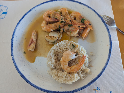 Food was not great, some good, some not good. We did have reservations, which I recommend calling well in advance if you want a table along the window or outside along the railing or out front. Sardine dish was not consistent with its salt content with some of the sardines being way too salty drowning all pleasant flavors out. The salad that came with it felt and tasted like old tomato and lettuce, literally just chopped lettuce and tomatoes plopped in a bowl. Fried shrimp was lazy and nothing special. If you are going to make the customer do all the work, at least you can put some effort into the flavors. Rice that came with it was cooked well and had a nice flavor though. Fried shrimp to Americans means battered and fried, not stir fried with the head and shell still in tact. So be warned fellow ignorant Americans. Lol My daughter's pesto pasta was actually the only standout solid main dish. My wife did enjoy the fish soup. Service was unexciting. The only person that seems to enjoy serving there and smiled was the young lady taking drink orders and serving them. She was very pleasant. Our waiter was one of those kids that acted like he had somewhere better to be and was annoyed he was even talking to you. He finally smiled when I complemented his tattoos and if he simply did that more, his guests would enjoy their time more consistently. We waited for ever for our check. Despite the place being small, having no liquid or food in front of us for quite some time, not a peep after asking us if we want dessert and taking our main dishes away. Just left us alone for about 15 minutes with nothing to do but twiddle our thumbs. It was tough to even get their attention as they rarely looked at your table most the evening. We enjoy our own company, but typically we would be at least offered more drinks, coffee and/or check when nothing at all they serve is still of use for the customer at the table. They certainly have the demand due to the location to get other people seated, so no clue why they don't properly finish service. I recommend they quality control their food better and train their staff to do simple things like always table checking when on the floor. A little eye contact to insure the guest doesn't want anything...