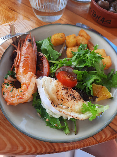Read moreSituated right on the Burgau Beach, with stunning views, this restaurant certainly caught our attention as we strolled on the beach. We didn't have a booking but they found room for us anyway during a busy lunch service. We ordered drinks and they arrived inside 3 minutes (I mention this as it's so rare these days to get fast service) The food was absolutely delicious, almost certainly the best food we've had in Portugal, we had the mussels in white wine and garlic for starters and the tiger prawns for main. From the wait staff to the kitchen everyone was at the top of their game. You could tell these guys are professionals and love what they are doing. Would give them 6 stars if I could....