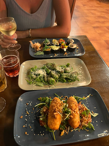 What a cool local! Based on a recommendation from friends we ended up here and have not regretted it for a second. We called ahead and reserved a table, because depending on the day and time, it can be quite crowded. And it was. We came on a Wednesday and were lucky enough to witness a live band playing reagge music and really heating up the guests at the end of the evening. The food was excellent, we tried a few starters that night and were not disappointed. We enjoyed this evening so much that we came back on Friday. There was dancing evening, a completely different atmosphere and audience rather quiet and dignified, which we had not expected on a weekend day. Food was still super tasty. This time we have again the vegan sushi - in any case a recommendation! - and the Thaifish burger tasted- brings in any case hunger, the...