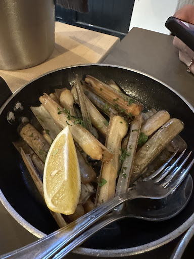 Just left. They didn't have anything we wanted on the menu - all seasonal although I noted some were on their special board yesterday and had clams last night elsewhere. The waiter removed a plate and the wind blew wine all over me, completely soaked- I am heavily pregnant so walking around smelling of wine is not a good look. We waited a very long time for our main course to arrive. When it did the fish was delicious but the grilled prawns (23 euros) were so over cooked and tough I couldn't eat them. We also didnt have any knives to eat with and no waiter around to ask. When I went to pay the bill and told them about the prawns the new waiter who had arrived said it wasn't his fault and offered me nothing. I said if it was my restaurant I would at least offer a discount on the prawns - he just shrugged his shoulders. I have been coming to this area of Portugal for over 30 years and this is the worst restaurant experience I have ever had in my favourite country. The lunch took nearly 2 hrs and cost 103 euros for two adults and a small child sharing with us. I could see the first waiter was just having a bad day but what annoyed me was the complete unwillingness of the second waiter who had taken charge to have any sympathy, humour or sense of customer service. Very disappointed- feel robbed of a good lunch and half the day. I have never left a review before, which I think...