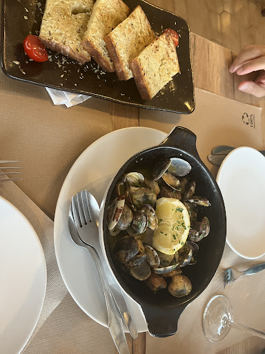 We ordered some bread, butter, sardine paste and olives to still the initial hunger and shared some clamps as a starter.