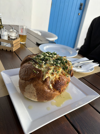 Read moreMy husband and I had an EXCELLENT lunch here on the terrace. Eurico was very friendly and helpful - which enhanced our experience. He recommended the codfish in bread (Bacalhau no Pão) as the specialty. We ordered the 2 pax version for 27€ and only managed to finish 2/3rds despite my husband being a reasonably big eater - it was THAT big! Eurico kindly packed the remainder so we could have it for dinner. He recommended the carob tart with lime & basil ice cream (5€) and it was delicious. Reasonably priced, great service and delicious food - we’d...