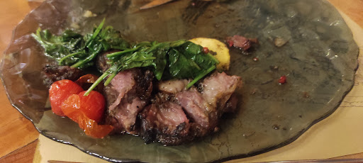 We had a bad experience due to really disgusting behavior by a customer who seems to be overly friendly with the owners and behaves like he owns the place. When we came in the dog of the two men came up to us and we were cordial and everything was fine. For some reason he was telling his dog to come to us, but we just ignored them. Then later he walks by our table, and without saying anything, he just steps on my dog with his dirty boot and just stands over here stepping on her. I look at him and ask him what he is doing, and he says to not worry that dogs like it. I then told him to please put his foot off my dog, in a way that was honestly way too polite for such disgusting and disrespectful behavior. He then got angry at ME for telling him not to. He then made a scene being overly nice to other people eating there and giving them food from his plate loudly saying “… because YOU deserve it, not like this young generation” pointing at us and speaking very loud about us. Who just steps on other people’s dogs?? What a disgusting person.