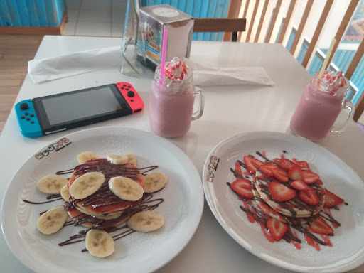 Sem dúvida um dos meus espaços favoritos entre a Póvoa e a Vila! Têm uma grande variedade de waffles, panquecas e crepes e se não gostar de nenhuma das combinações do menu pode fazer a sua propria combinaçao com vários ingredientes. Os batidos tambem sao muito bons e feitos na hora! Recomendo o de morango, é particularmente refrescante! O atendimento também é bastante bom e todos os funcionários que me atentenderam foram bastante prestaveis e úteis. O tempo de espera é um pouco grande mas temos de ter em conta que não há espaço para fazer todos os pedidos de uma vez Entao já tenham em conta que vai demorar um pouco.. eu diria 10 a 20 minutos se tiver com algumas pessoas. No geral recomendo este espaço para dar uma fugidinha do típico lanche em padarias comuns. O preço ronda em volta...