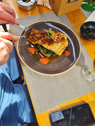 Optamos por um menu executivo e um prato da carta. No menu escolhemos uns bolos de polvo como entrada, tagliatelli de salmão, espadarte e tamboril e café . Td muito bom. Os bolos de polvo estavam top! O segundo prato foi um um bacalhau com crosta de azeitona e broa! Com legumes e batata! Estava muito bom e a dose era generosa!! Rematei com um digestivo, uma das melhores amêndoas amargas com limão q já bebi!! Copo a meio só com gelo e sumo de limão espremido e só dps adicionado o licor na minha presença! Dose generosa e saborosa! Voltava só por este pormenor 👏👏👏