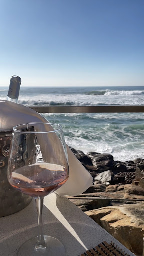 The location and view is unbeatable especially as the high tide waves crashed right in front of us. Well sheltered for a sunny cool winters day meant we were toasty warm. The design is good as my 20 year career is in luxury hospitality design. Thankfully limited supplier branded furniture apart from the parasols and coffee cups.