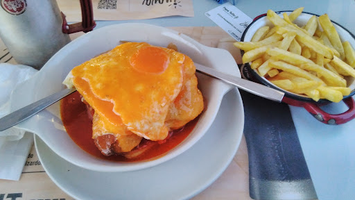 Read moreWhat is this place, I look at the menu and there are 20 types of francesinha, this makes no sense, it bothers me but in the end it's more personal and not very objective. Me and my friends were dinning on rush hour and they sat us on a table of 4 (we were 8) I look around and see families comfortably sitting in tables of 4 and larger groups in larger tables, but not us. The fries don't come included with the francesinha which pisses me off and its expensive for the service I got. I can see other people having a great...