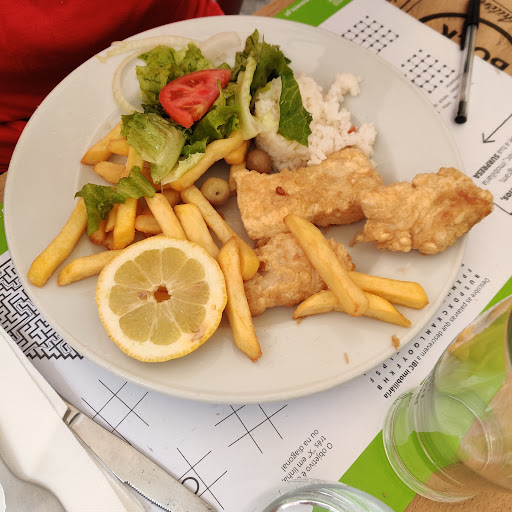 Restaurant with a large and agréable terrasse. Thé service was fast. For food we got clamares and polvo panado. Both were good in particular the polvo (octopus), it was in the right spot between tender and chewy. For main dishes, we got two dishes of the day: rabinho de bovino com purée and filetes with rice. The quality was lower here. The rice was not properly cooked. For the rabinho, the taste was ok, but there was very little to eat. I know that rabinho de bovino has a lot bone by definition, but I would expect to have more pieces. The plates was full there was room. The prices...