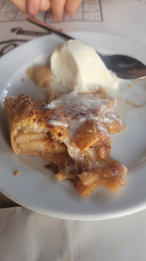 I believe we met the owner .. he was nice Service is slow here. I'm not sure if that is the way it is as we just arrived and wanted to check out the town. 8pm and the streets are empty. we noticed this place seems to be the place to be The waiter didn't come back for a while, and when he did another 45 mins, it took to get our food. I wanted to try the burger and ask for everything on the top side of fries ..it came, and I had to wait another 8 mins for the ketchup and mayo.. the burger was cold, disappointed in that part of the meal, the fish was ok... pizza was good, lots of cheese