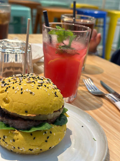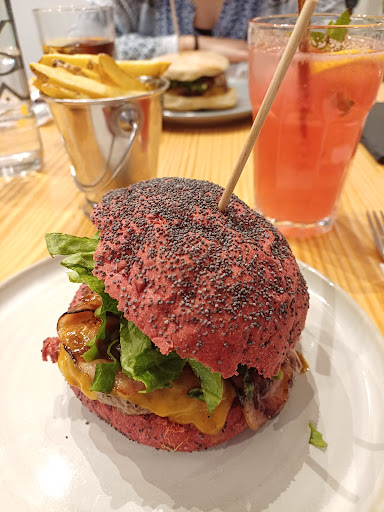 We came for dinner and were excited to try the colourful breads, we were very welcomed by the waitress which was very polite and friendly she explained how everything worked. We had the smash Burguer and the bacon one I wanted the onion bread which unfortunately they didn’t had but ended up having the tomato one which was recommended and it tasted great. The burguers were both delicious full of taste but were very small although we had olives and pate and ordered as well the nachos with guacamole that was as well a really small portion, we left hungry as the burguers were small and wasn’t enough for us. The overall experience it was good. The price it was average and the quality it was high. The atmosphere it was great and the place it actually had a...