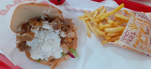 Read moreGostei do espaço. Embora o funcionário tenha alguma dificuldade com o português, o atendimento foi bom. Dou 3 estrelas apenas por não ter gostado de ver 3 coisas que considero essenciais numa época de desconfinamento. 1 o funcionário apenas utilizava um comum guardanapo de pano tapando o nariz e a boca que não sei quantas vezes foi colocado e retirado da cara. 2 o atendente utilizava uma luva de plástico numa mão e não a trocou depois de receber o pagamento do meu pedido e na outra mão não tinha nenhuma luva e utilizou as duas mãos ( uma com a mesma luva e outra sem luvas) no preparo do meu pedido mexendo na minha comida. 3 estava a almoçar e verifiquei que o atendente estava sem o guardanapo de pano e sem luvas na entrada da cozinha falando ao telemóvel. Nesta altura em que o COVID-19 ainda se encontra activo este tipo de actuação é...