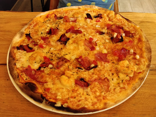 Pontos fracos: No entanto, a comida desilude. As entradas são pouco originais – servir apenas pão torrado com manteiga não é o que se espera de um local que pretende ter uma oferta diferenciada. As pizzas, embora de massa fina, têm pouco queijo e são escassas em ingredientes, ficando aquém das expectativas para quem gosta de uma pizza bem recheada. Além disso, a apresentação dos pratos é fraca, sem qualquer cuidado visual.
