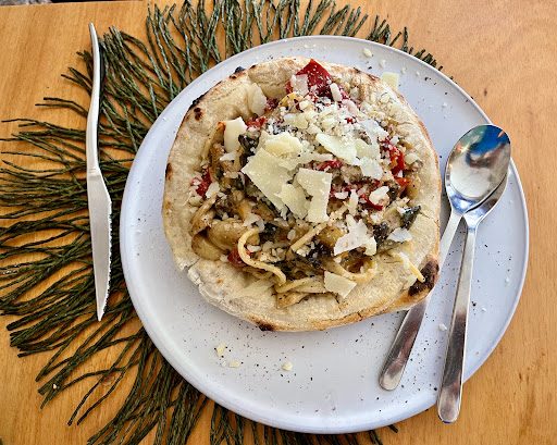 Read moreNos hemos guiado por las reseñas para ir a comer a este restaurante. En todas las reseñas reflejan la buena comida italiana y el buen servicio. Pues bien, la comida italiana está genial y la idea de servir la pasta encima de una masa de pizza es realmente original. El servicio al contrario deja mucho que desear. Mi esposa y yo hemos pedido una botella de vino y 2 platos de pasta. Tardaron muchísimo en servirnos y cuando tocó nuestro turno resulta que los 2 platos de pasta se los habían servido a otra mesa. Despues de medio minuto se dieron cuenta del error y preguntaron en la mesa si habían probado la comida. Supongo que al contestarles que no, procedieron a retirar los 2 platos y amablemente nos preguntaron si los queriamos nosotros. Nuestras caras fueron un poema y no sabíamos que contestar. Llevaron los platos de nuevo a la cocina y a los 3 minutos teníamos los platos servidos en la mesa. Estoy 99% seguro, que eran los mismos que habían estado en la mesa de al lado. Si no, como pudieron ser esta vez tan rapidos, cuando anteriormente tardaron mas de 20 minutos? Ademas de venir el plato ya manchado y no caliente del todo al dar tantas vueltas. Lo curioso fue que al parecer la mesa de al lado también habia pedido lo mismo ya que unos minutos después les han servido lo mismo. En resumen, fuimos con expectativas muy altas y por el descontrol con las comandas no pudimos realmente disfrutar de la buena comida italiana, ya que a nadie le gusta comer un plato que tuviera delante de otra persona...